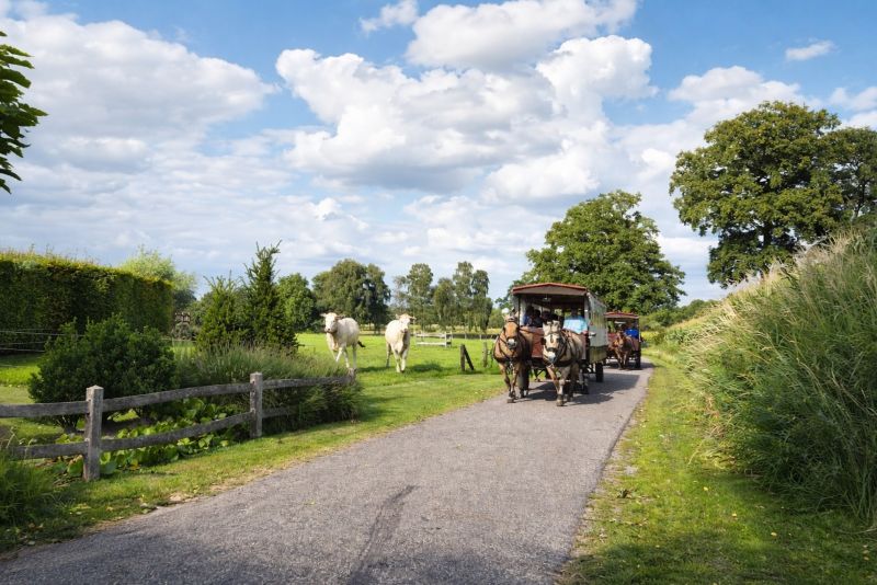 Ook buiten het centrum zie je hoe cultuur en landschap met elkaar verbonden zijn. Je wandelt door het typische coulisselandschap met houtwallen, essen en oude boerderijen. Veel paden volgen historische routes die vroeger door boeren en handelaren werden gebruikt.